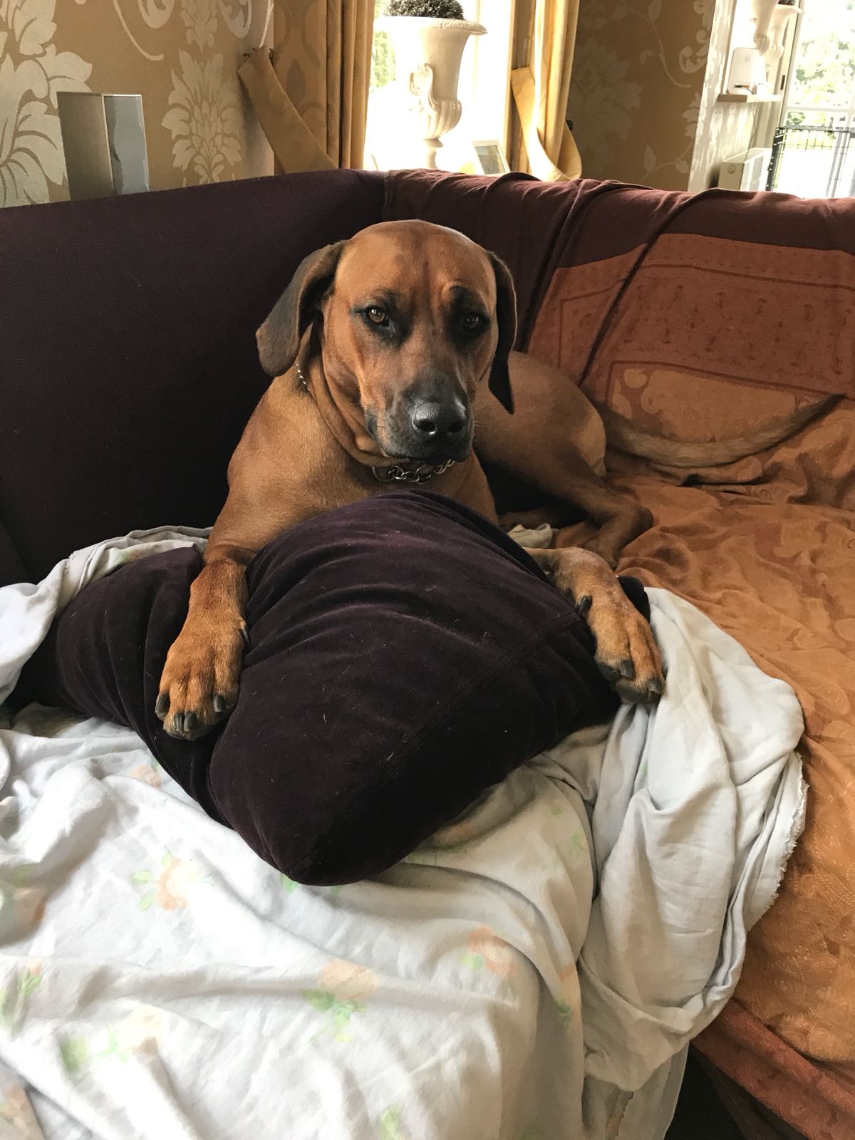 Dafina komt uit mijn vorige geweldige hond Donna of Rhodesian Island. Zij is helaas in maart 2017 overleden. Vader is Mambo of Mwanandongo. Wij hebben gelukkig deze super sociale hond en haar zus Hadiya uit haar. Dafina is een zeer aanhankelijke vrolijke hond en speelt graag met haar zus Hadiya.